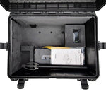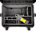 • Der Trolleykoffer mit Schaumstoff besitzt 2 Ebenen. In der oberen Ebene alle wichtigen Dinge im direkten Zugriff (Fernsteuerung, Drohne, Kabel etc.) und in der zweiten Ebene finden sich das Kabel inkl. Trommel als auch der Greifarm. Der Koffer wurde von uns in Deutschland produziert und hat die folgende Abmaße: 604x473x283mm und ein Leergewicht von ca. 8Kg.