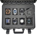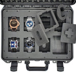 - Extrem sicherer Transportkoffer für bis zu 8 Uhren. So konzipiert, dass nahezu Wecker aller Größen in dem Koffer Platz finden. Der Koffer ist IP67 zertifiziert, somit (Unter)Wasserdicht - Staubdicht. Ihre Zeitmesser sind somit in allen Umgebungen sicher verwahrt. Die Uhren befinden sich auf flexiblen Schaumstoffpolstern, sodass auch Uhren mit geringem Bandumfang ideal liegen.