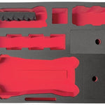 Das große Multifunktionsfach mit entnehmbarem Akku-Schaumstoffmodul erlaubt die Erweiterung der Akkukapazität im Transport – damit finden je nach Konfiguration bis zu 9 Akkus ihren Platz.