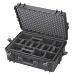Custodia impermeabile e antipolvere in nero, incl. inserti in schiuma con punzonatura a cubo per la regolazione individuale. Dimensioni interne: 500 x 350 x 194mm Profondità coperchio+fondo: 58 + 136mm...