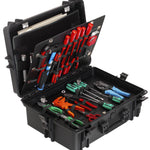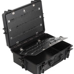 Custodia impermeabile e antipolvere in nero, incl. inserti in schiuma con punzonatura a cubo per la regolazione individuale. Dimensioni interne: 500 x 350 x 194mm Profondità coperchio+fondo: 58 + 136mm...