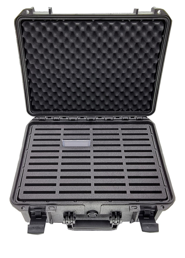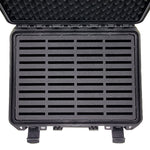 Hochrobuster, schlag- und wasserdichter Transportkoffer für Trading- und Sammelkarten Passend für bis zu 44 gegradete Trading Card Cases. Maße eines Ausschnittes: Breite ca 8 cm x 0,7 cm.  Außenmaße 414 x...