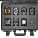 Professioneller Transportkoffer für bis zu 8 Uhren – Inklusive individual Fach für diverses wie z.B. Dokumente, Putztücher und mehr.